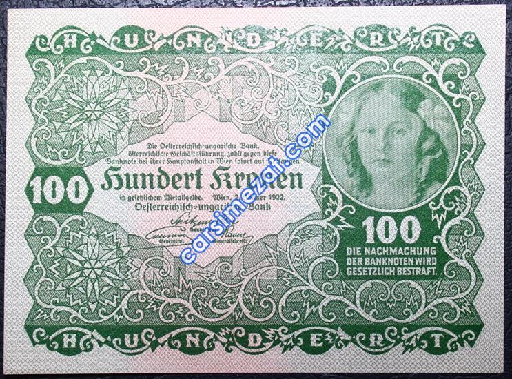 YABANCI KAĞIT AVUSTURYA 100 KRON 1922 ÇİL 2 Adet Resim