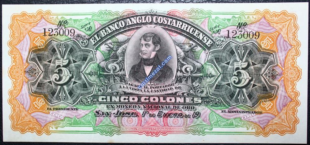 YABANCI KAĞIT KOSTARİKA 5 COLONES 1917 DALGALI ÇİL 2 Adet Resim