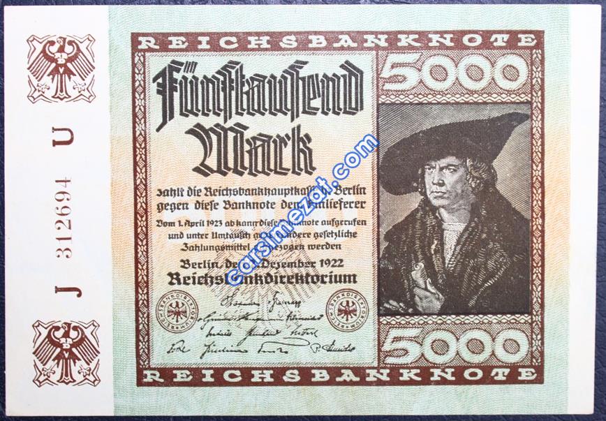 YABANCI KAĞIT ALMANYA 5000 MARK 1922 ÇİL 2 Adet Resim