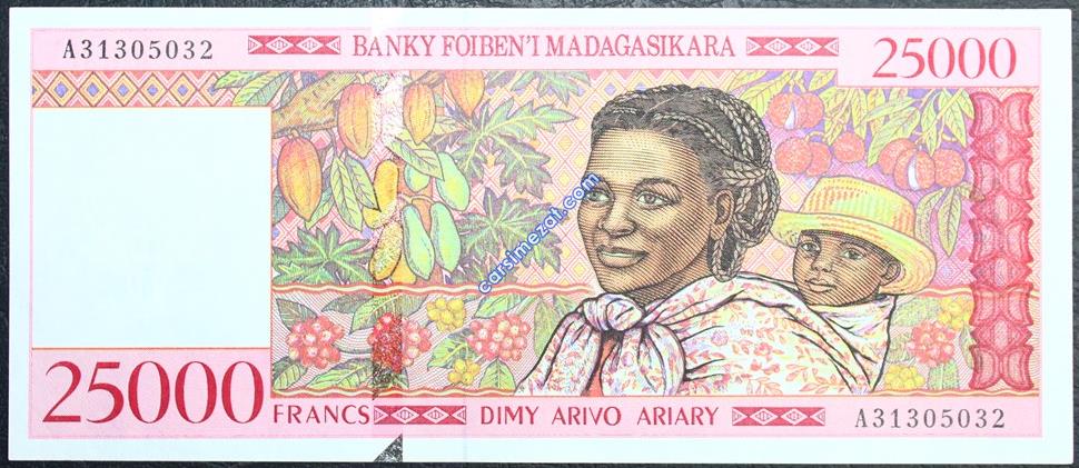 YABANCI KAĞIT MADAGASKAR 25.000 FRANCS ÇİL 2 Adet Resim