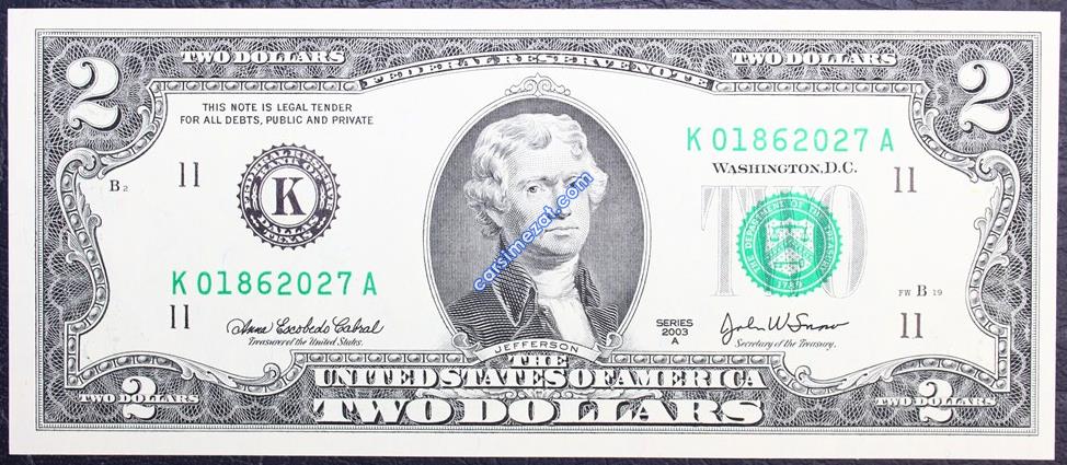 YABANCI KAĞIT AMERİKA 2 DOLAR 2003 K SERİ ÇİL 2 Adet Resim