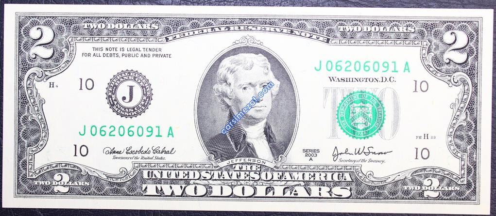 YABANCI KAĞIT AMERİKA 2 DOLAR 2003 J SERİ ÇİL 2 Adet Resim