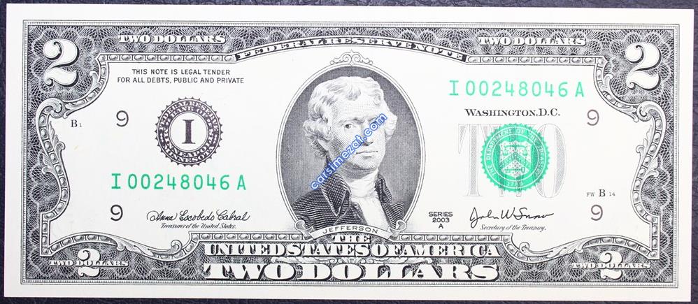 YABANCI KAĞIT AMERİKA 2 DOLAR 2003 I SERİ ÇİL 2 Adet Resim