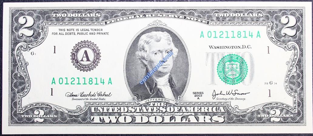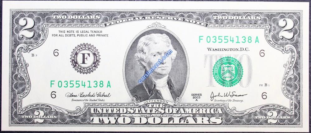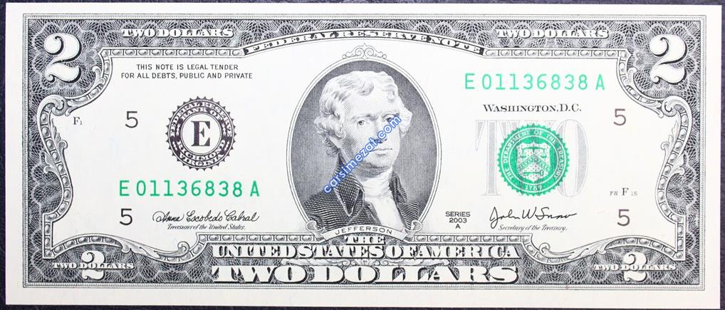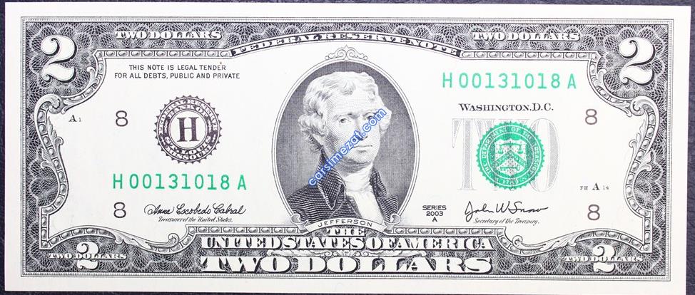 YABANCI KAĞIT AMERİKA 2 DOLAR 2003 A SERİ ÇİL 2 Adet Resim