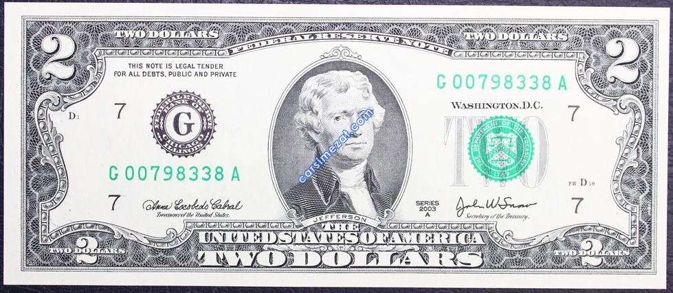YABANCI KAĞIT AMERİKA 2 DOLAR 2003 G SERİ ÇİL 2 Adet Resim