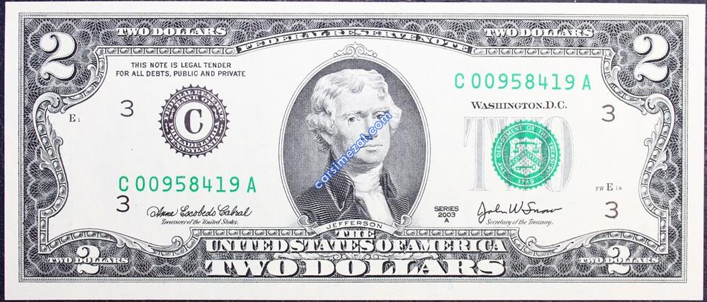 YABANCI KAĞIT AMERİKA 2 DOLAR 2003 C SERİ ÇİL 2 Adet Resim