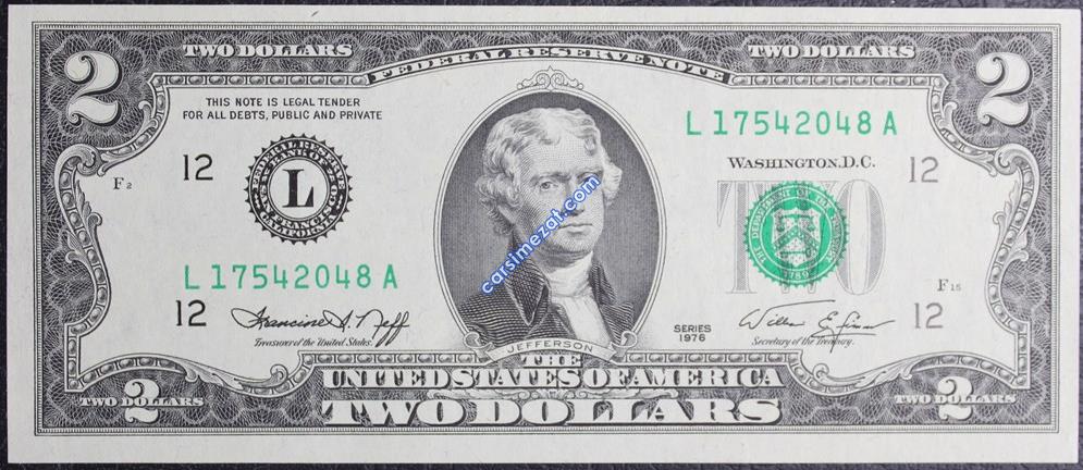YABANCI KAĞIT AMERİKA 2 DOLAR 1976 L SERİ ÇİL 2 Adet Resim