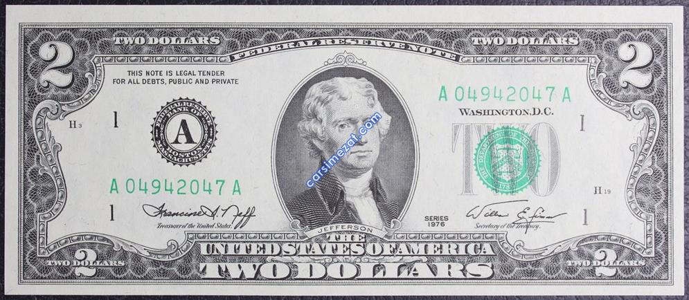 YABANCI KAĞIT AMERİKA 2 DOLAR 1976 A SERİ ÇİL