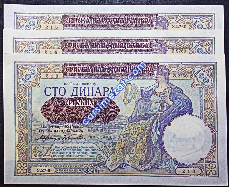 YABANCI KAĞIT SIRBİSTAN 100 DİNAR 1941 SERİ TAKİPLİ 3 LÜ LOT ÇİL