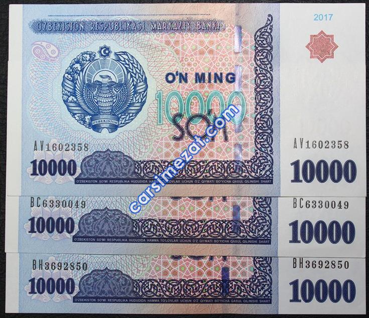 YABANCI KAĞIT ÖZBEKİSTAN 10.000 SOM 2017 3 LÜ LOT ÇA