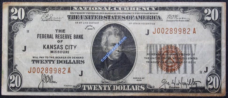 YABANCI KAĞIT AMERİKA 20 DOLAR 1929 TEMİZ
