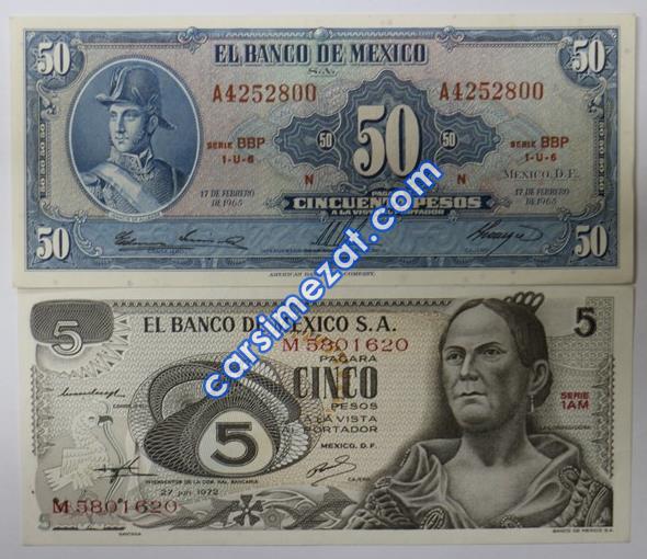 YABANCI KAĞIT MEKSİKA 2 Lİ LOT 5/50 PESOS ÇA