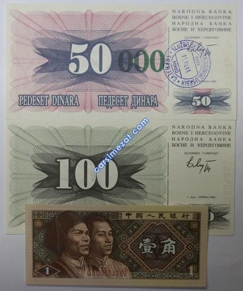 YABANCI KAĞIT BOSNA HERSEK 10/25/50 DİNAR 1992 ÇİL