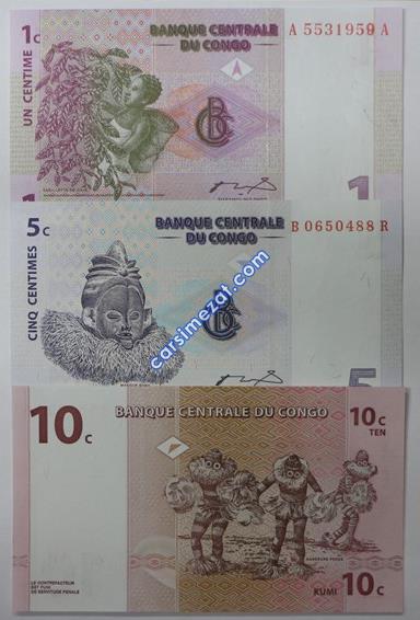 YABANCI KAĞIT KONGO 3 LÜ SET 1/5/10 CENTIMES ÇİL