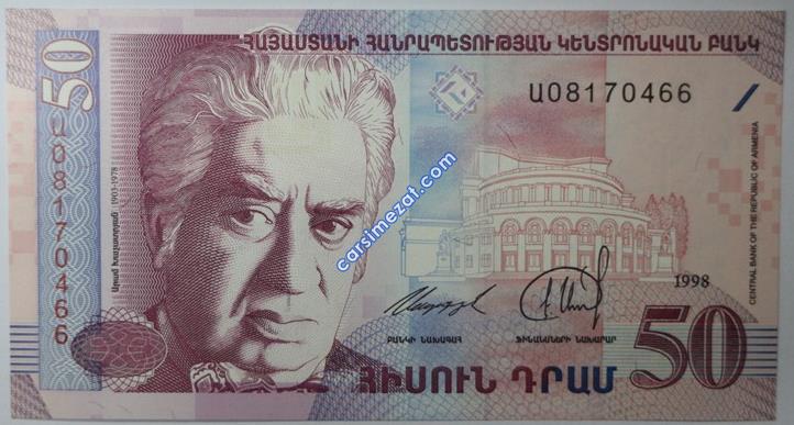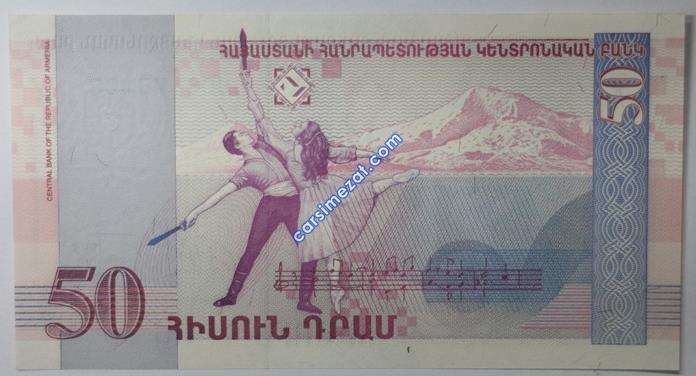 YABANCI KAĞIT ERMENİSTAN 50 DRAM 1998 ÇİL