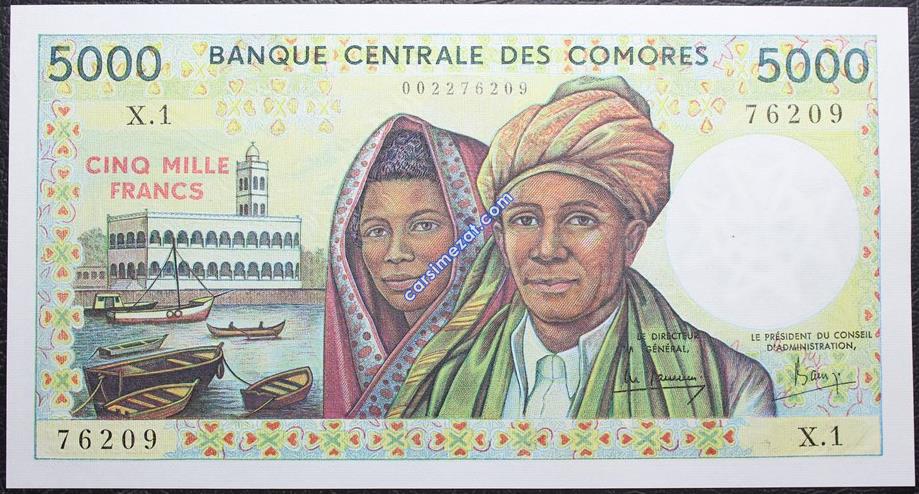 YABANCI KAĞIT KOMOR 5000 FRANCS ÇİL