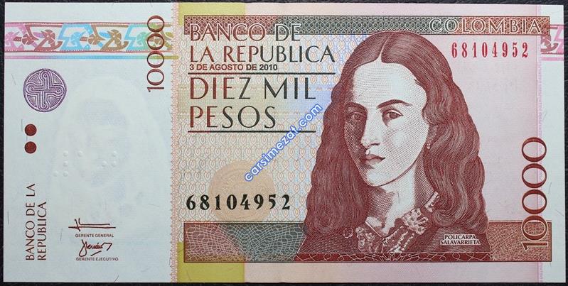 YABANCI KAĞIT KOLOMBİYA 10.000 PESO 2010 ÇİL