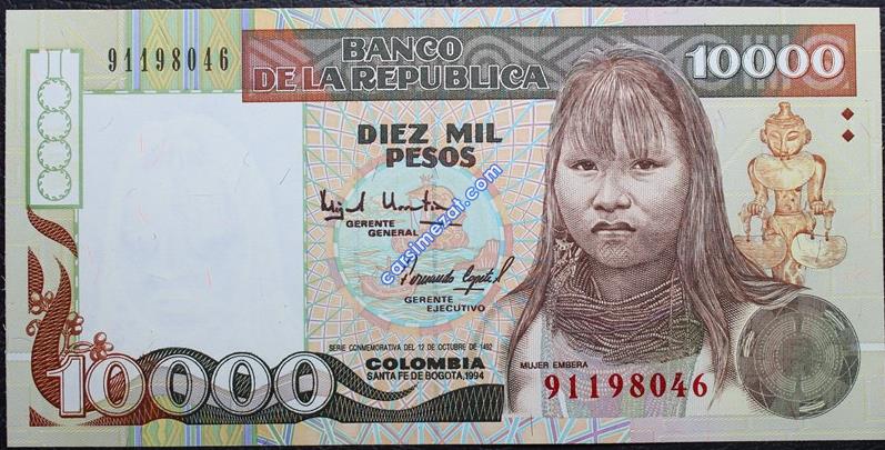 YABANCI KAĞIT KOLOMBİYA 10.000 PESO 1994 ÇİL