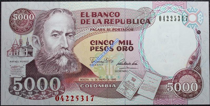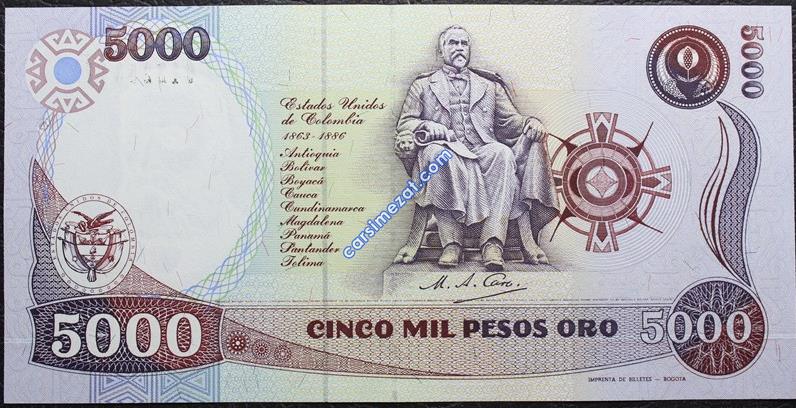 YABANCI KAĞIT KOLOMBİYA 5000 PESO 1990 ÇİL