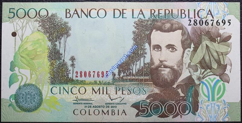 YABANCI KAĞIT KOLOMBİYA 5000 PESO 2013 ÇİL