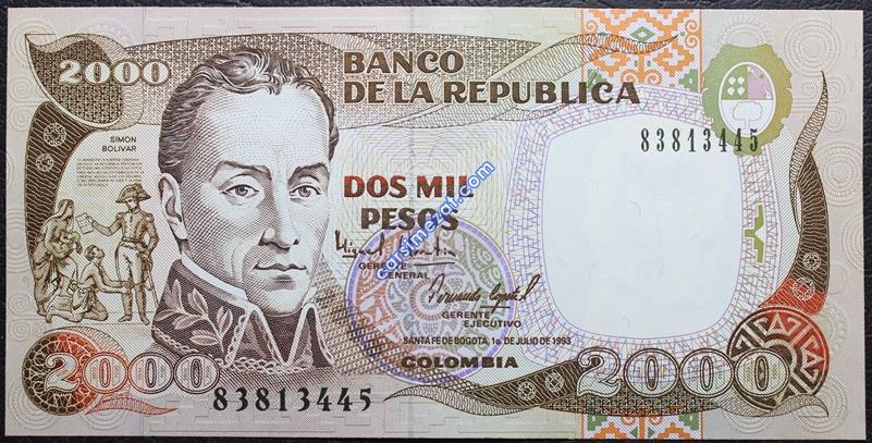 YABANCI KAĞIT KOLOMBİYA 2000 PESO1993 ÇİL