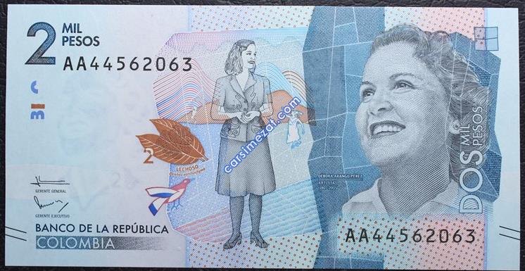 YABANCI KAĞIT KOLOMBİYA 2000 PESO ÇİL