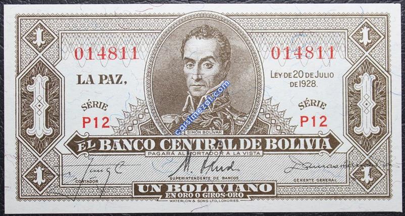 YABANCI KAĞIT BOLİVYA 1 BOLIVIANO 1928 ÇİL