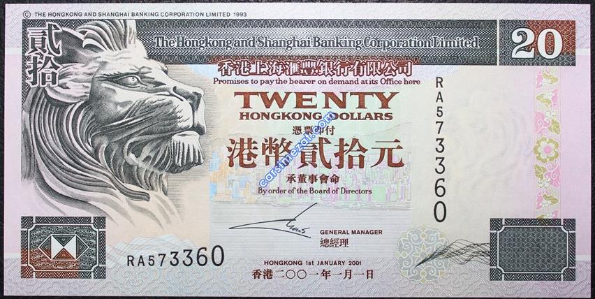 YABANCI KAĞIT HONG KONG 20 DOLAR 2001 ÇİL