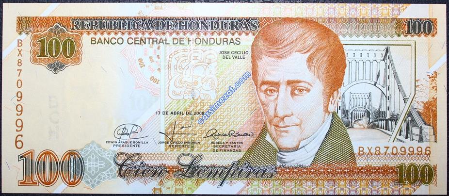 YABANCI KAĞIT HONDURAS 100 LEMPIRA 2008 ÇİL
