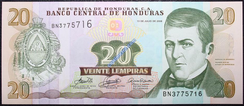 YABANCI KAĞIT HONDURAS 20 LEMPIRA 2006 ÇİL