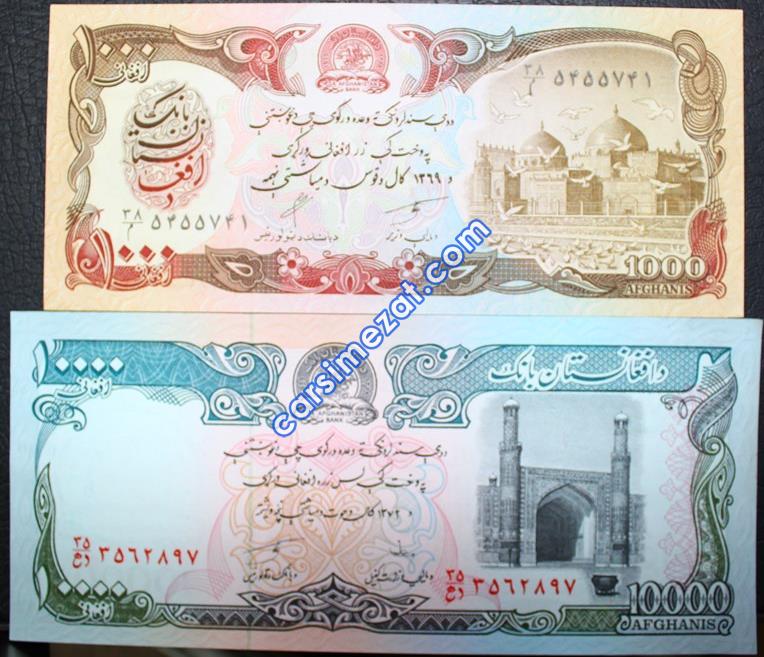 YABANCI KAĞIT AFGANİSTAN 1000-10.000 AFGHANI 2 Lİ LOT ÇİL