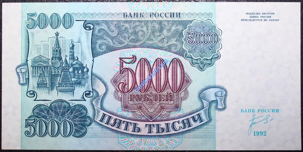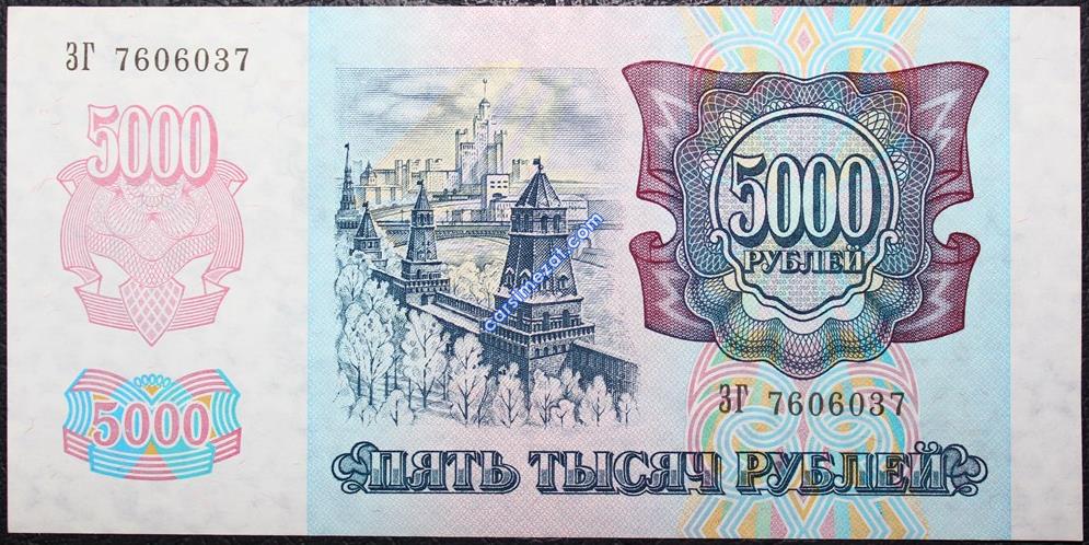 YABANCI KAĞIT RUSYA 5000 RUBLE 1992 ÇİL