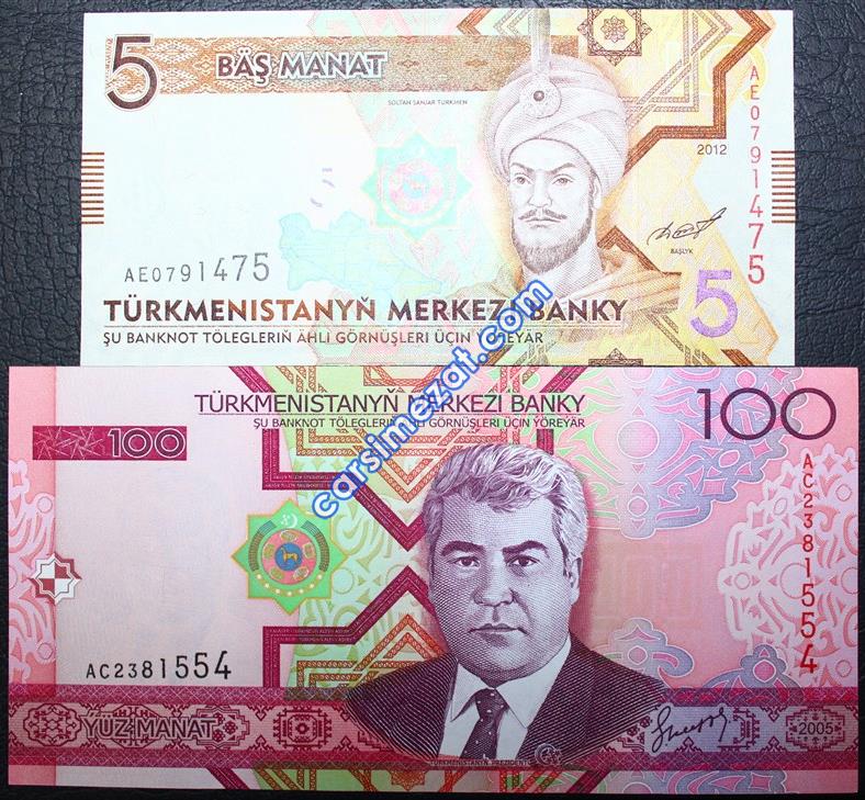 YABANCI KAĞIT TÜRKMENİSTAN 5-100 MANAT 2012-2005 2 Lİ LOT ÇİL