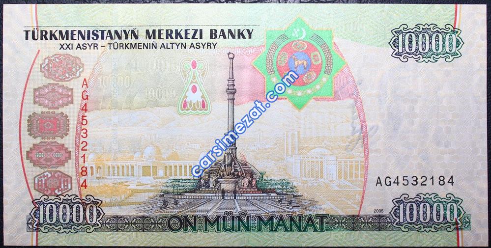 YABANCI KAĞIT TÜRKMENİSTAN 10.000 MANAT 2005 ÇİL