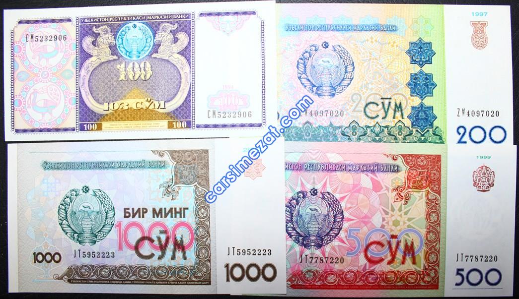 YABANCI KAĞIT ÖZBEKİSTAN 100-200-500-1000 SUM 4 LÜ LOT ÇİL