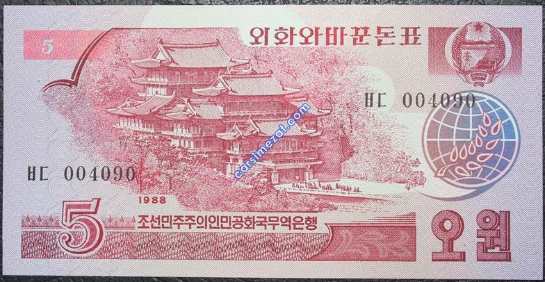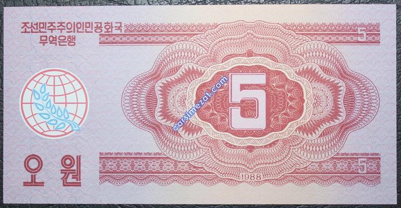 YABANCI KAĞIT KUZEY KORE 5 WON 1988 ÇİL