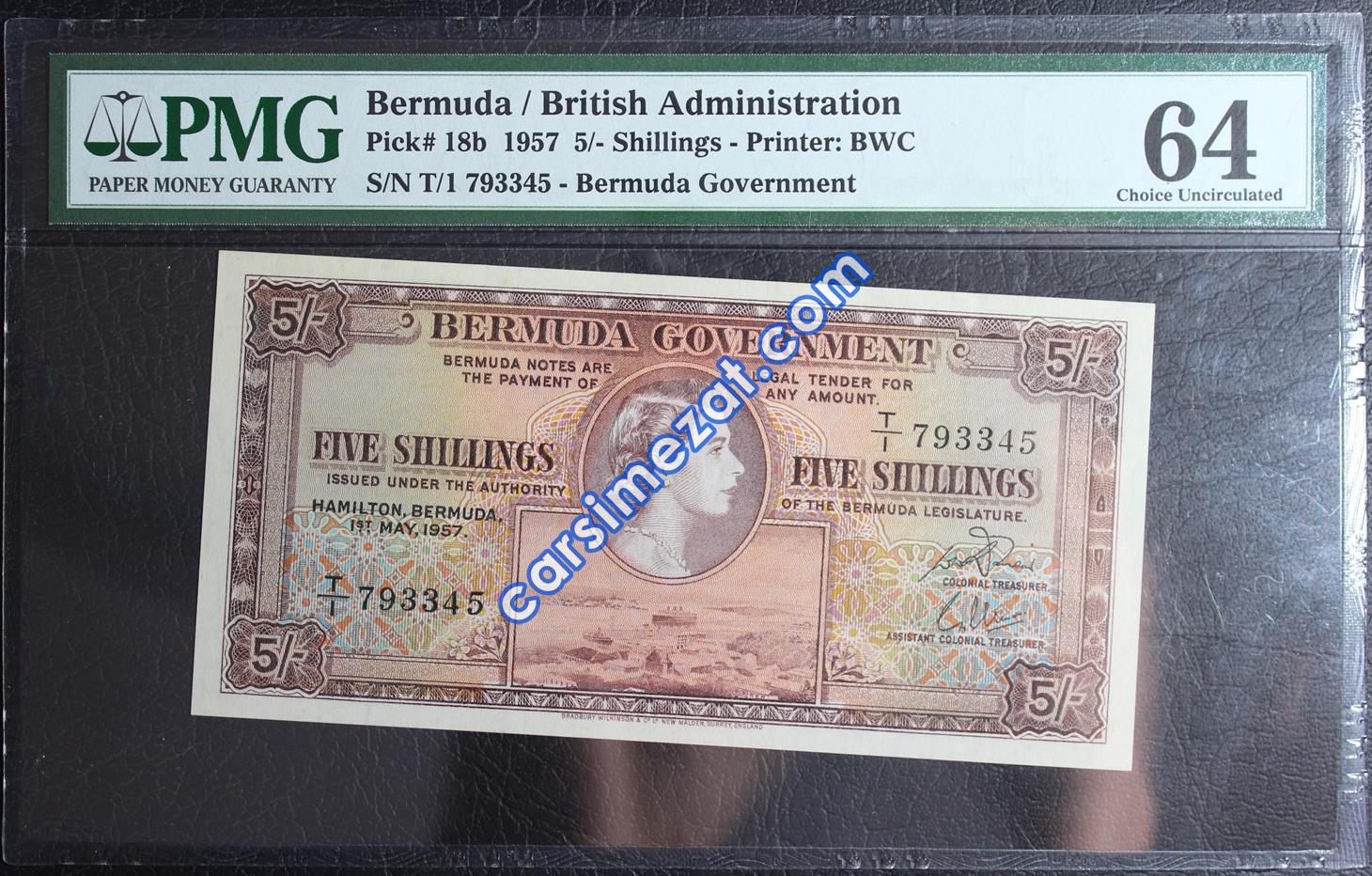 YABANCI KAĞIT BERMUDA 5 ŞİLİN 1957 PMG 64 ÇİL