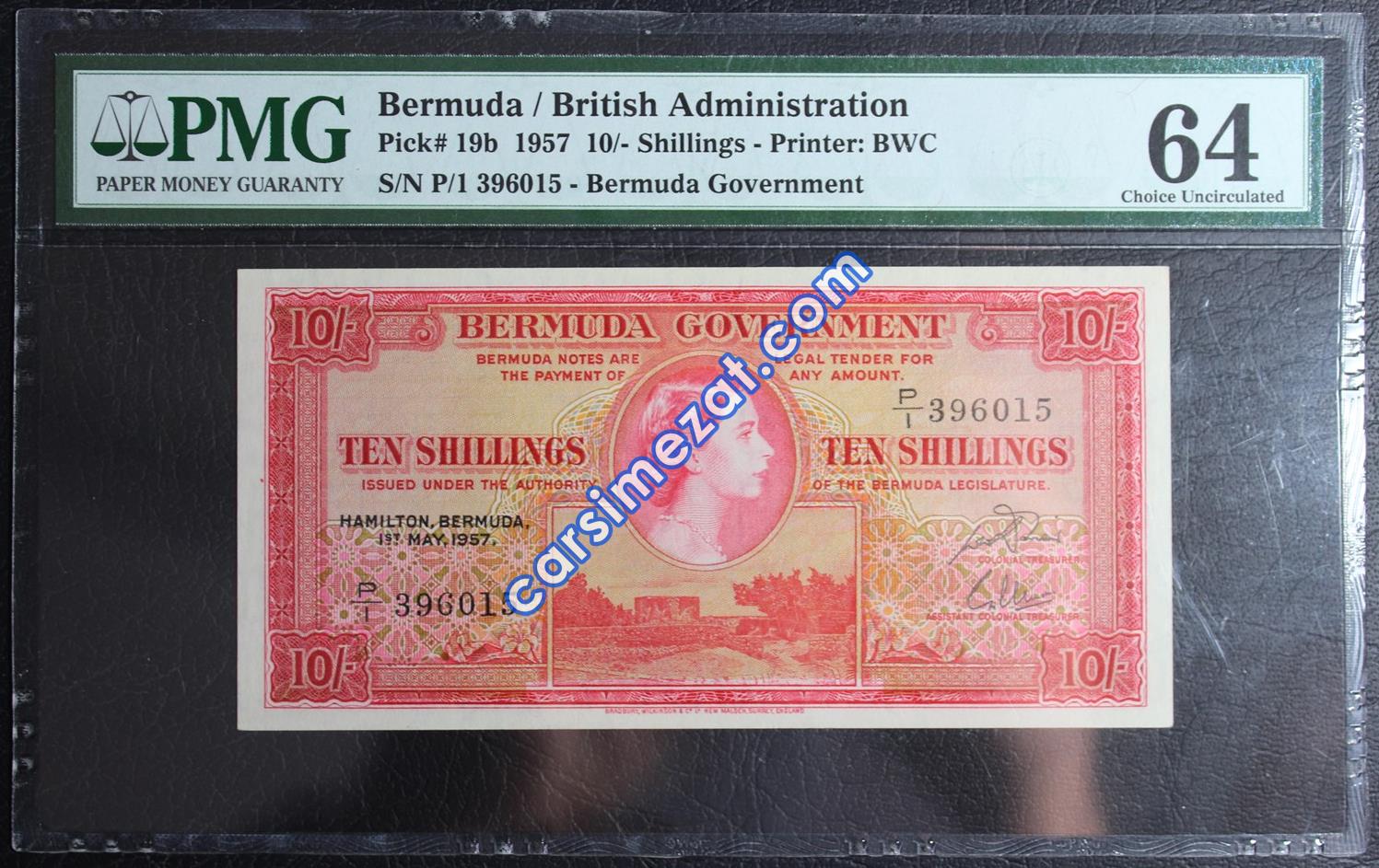 YABANCI KAĞIT BERMUDA 10 ŞİLİN 1957 PMG 64 ÇİL