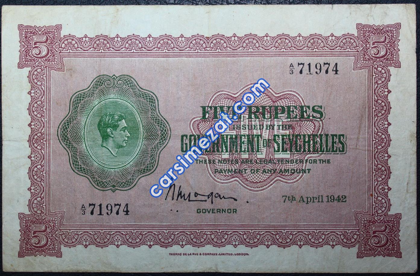 YABANCI KAĞIT SEYŞELLER 5 RUPEE 1942 TEMİZ