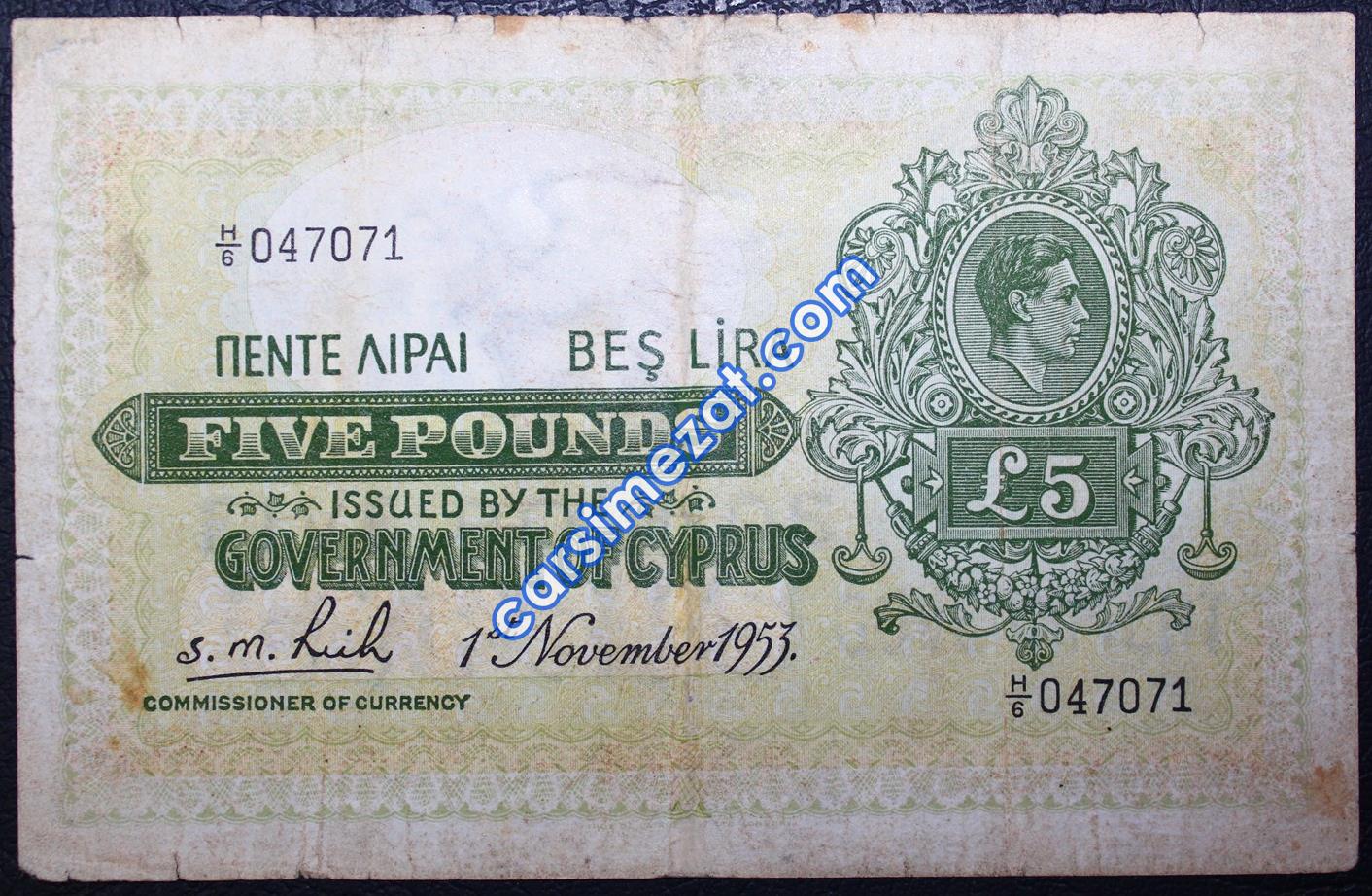 YABANCI KAĞIT KIBRIS 5 POUND 1953 NADİR TEMİZ