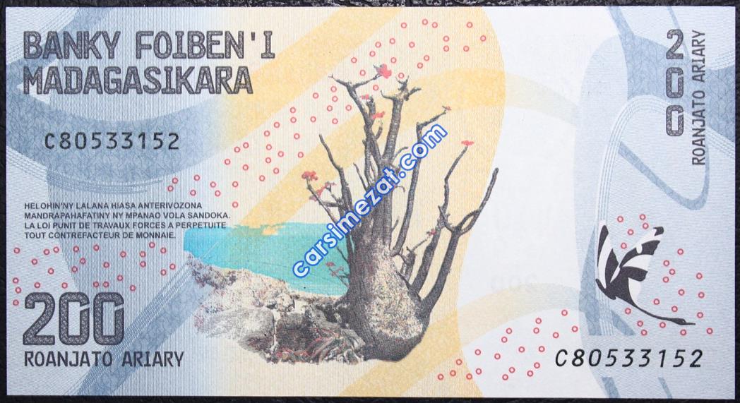 YABANCI KAĞIT MADAGASKAR 200 ARIARY HATIRA ÇİL