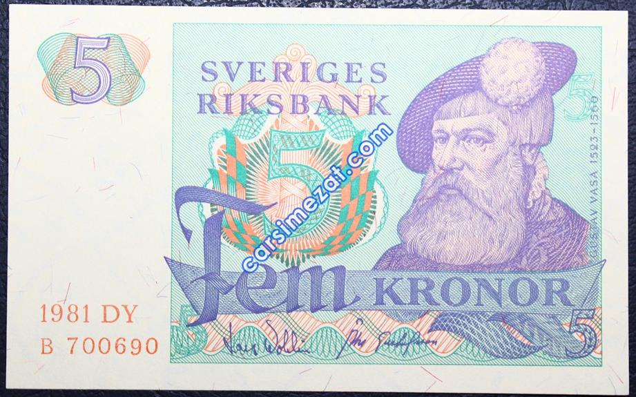 YABANCI KAĞIT İSVEÇ 5 KRONOR 1981 ÇİL