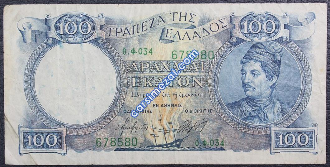 YABANCI KAĞIT YUNANİSTAN 100 DRAHMİ 1944 TEMİZ