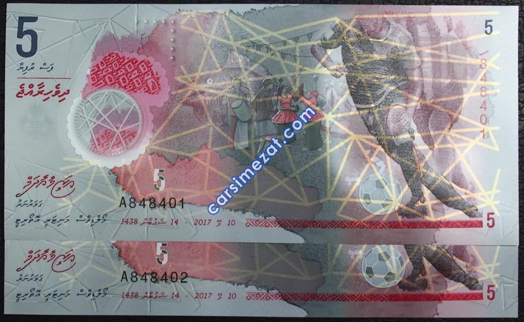 YABANCI KAĞIT MALDİVLER 5 RUFIYAA SERİ TAKİPLİ 2 Lİ LOT ÇİL