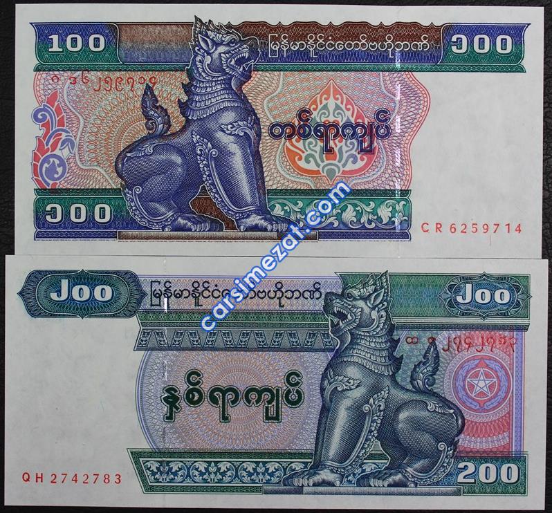 YABANCI KAĞIT MYANMAR 100-200 KYAT 2 Lİ LOT ÇİL