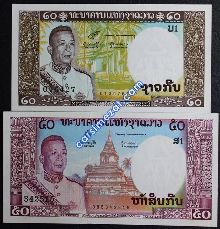 YABANCI KAĞIT LAOS 20-50 KIP 2 Lİ LOT ÇİL