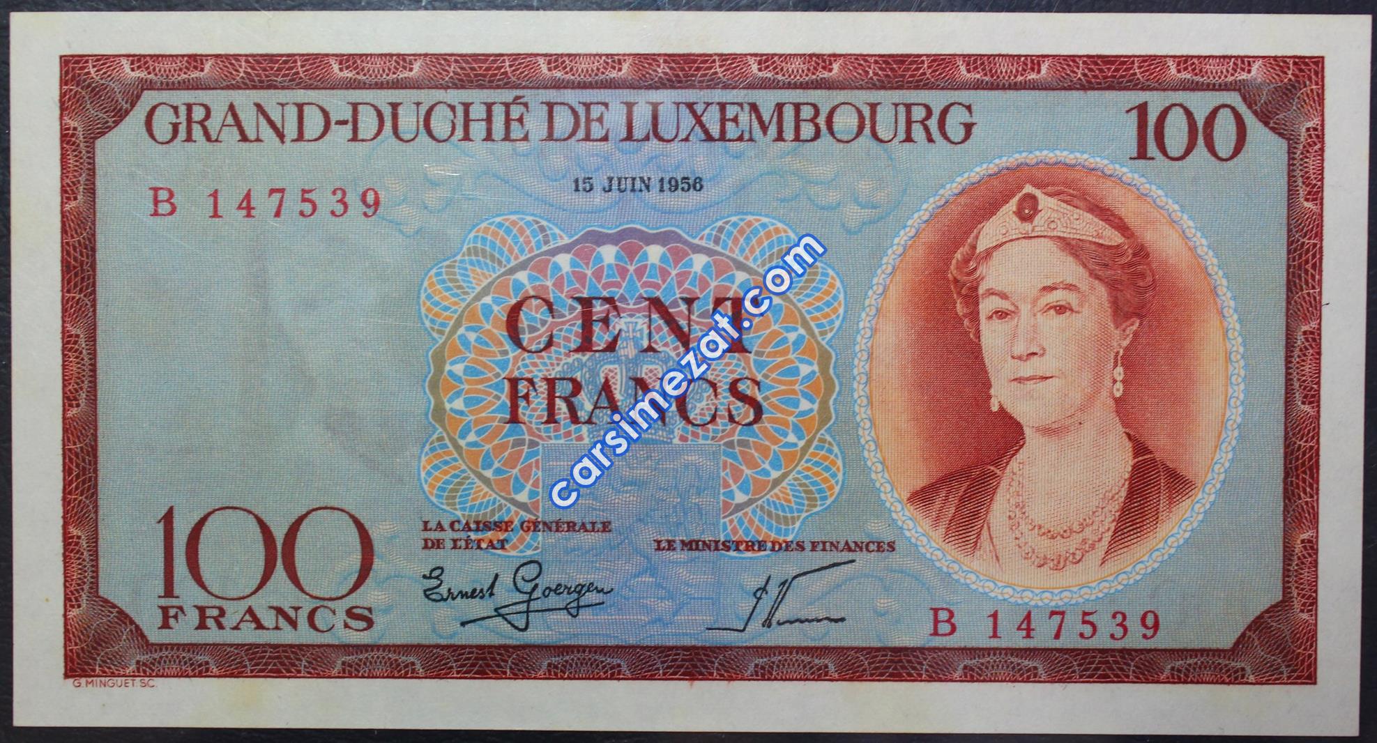 YABANCI KAĞIT LÜKSEMBURG 100 FRANCS 1956 ÇİL