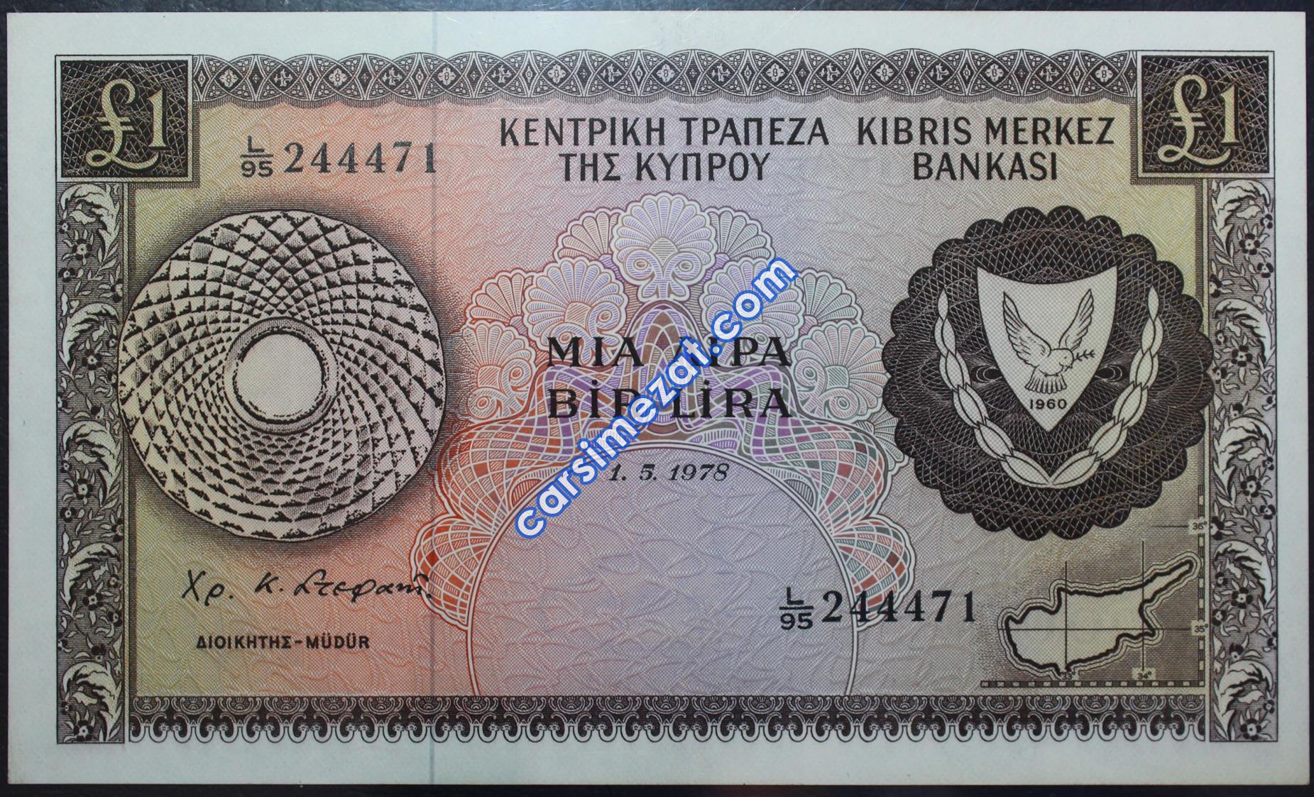 YABANCI KAĞIT KIBRIS 1 LİRA 1978 ÇİL
