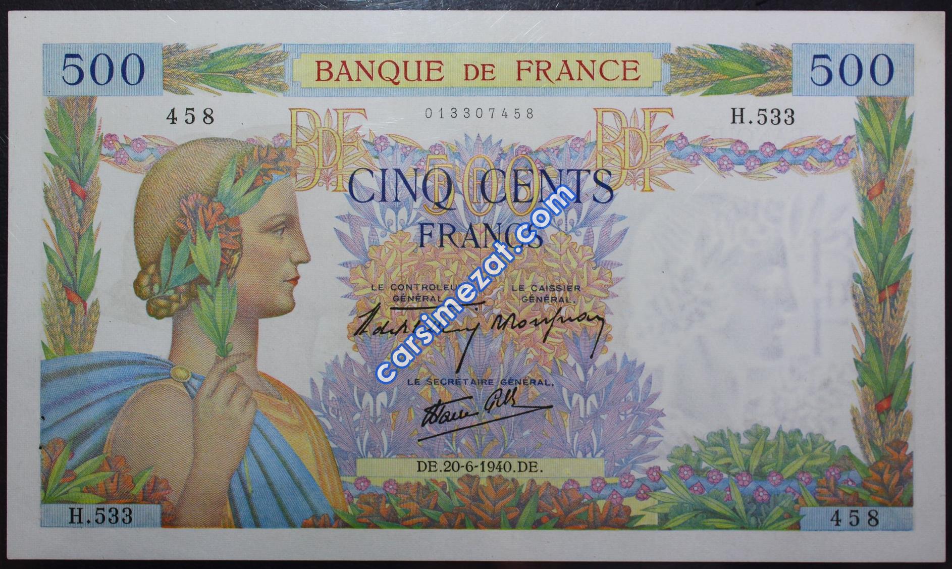 YABANCI KAĞIT FRANSA 100 FRANCS 1940 ÇİL