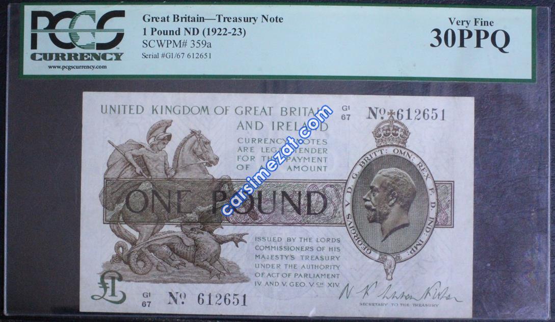 YABANCI KAĞIT İNGİLTERE-İRLANDA 1 POUND 1922 PCGS 30 ÇT